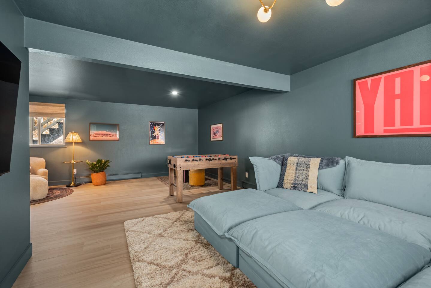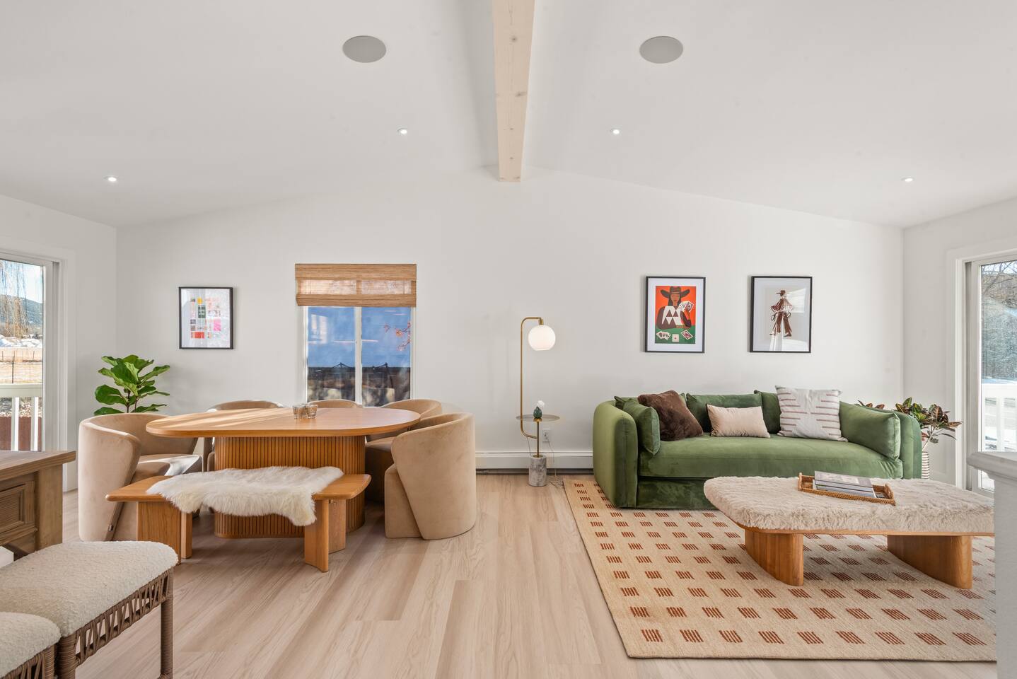 Welcome to your mid-valley Colorado retreat — a beautifully designed, family-friendly home perfectly positioned between Basalt, Carbondale, and Aspen. Every room is thoughtfully curated with layered textures, warm tones, custom details, and high-quality touches like luxurious Parachute linens on every bed. Enjoy frequent elk sightings in the backyard as they graze at the property line. The open-concept main floor is bright and welcoming, with a fully stocked chef’s kitchen, generous dining space, and a cozy living room, ideal for gathering after a day exploring the valley. Large windows bring in soft natural light while the layout encourages easy flow for cooking, relaxing, and spending time together. Restful bedrooms appointed with designer furniture, and a playful custom bunk room offer comfort for families and groups. Unwind after a day on the slopes in the game room downstairs with Pac-Man, foosball, and a 65-inch smart tv. For winter stays, you’ll appreciate ski-day convenience, and sleds for kids to enjoy snowy days around the neighborhood. In the summer, walk to Blue Lake and make full use of the paddle boards, beach toys, and outdoor gear ready for your family. Enjoy evening patio time, small-town charm, and endless recreation minutes from your front door. With smart-home tech, fast Wi-Fi, in-ceiling speakers, a detailed digital guidebook, plus kids’ toys, books, games (Monopoly, Guess Who, Cribbage, etc.), a high chair, baby gate, and pack-and-play, this home is the perfect four-season escape. Ideal for families, couples, or friends, it offers a well-appointed, private retreat for anyone looking to relax and enjoy a true Colorado adventure.